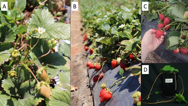 SD strawberry cultivars have the feature of one flush of flowering and fruiting in spring and early summer (Heide et al. 2013; Stewart and Folta 2010). Flowers in SD cultivars are initiated during colder temperatures and shorter photoperiods (day lengths), and runnering is induced during warm temperatures and longer photoperiods. LD cultivars are specifically bred for long-season production, especially in central and southern California (Bish et al. 2001; Neri et al. 2012; Castro et al. 2015; Arnade and Kuchler 2015). Flowering in LD cultivars can be initiated by longer day lengths and higher temperatures compared to SD cultivars. In the Southeast, the majority of strawberry production utilizes SD cultivars; however, the use of LD cultivars such as Albion or Monterey has become more popular in recent years but can be very challenging in the Southeastern climate.