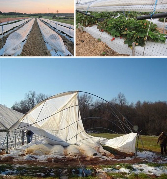 Typically, floating row covers to increase heat units should be used before the end of November, if daily high temperatures are predicted to be lower than 70°F. Prolonged row-cover use can result in disease spread and reduced pollination. Botrytis gray mold and spider mites in particular can become a concern under row covers. Disease and pest management before row-cover application and after removal is recommended. Please consult the Southeast Regional Strawberry Integrated Pest Management Guide Focused on Plasticulture Production for more guidance.