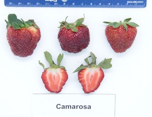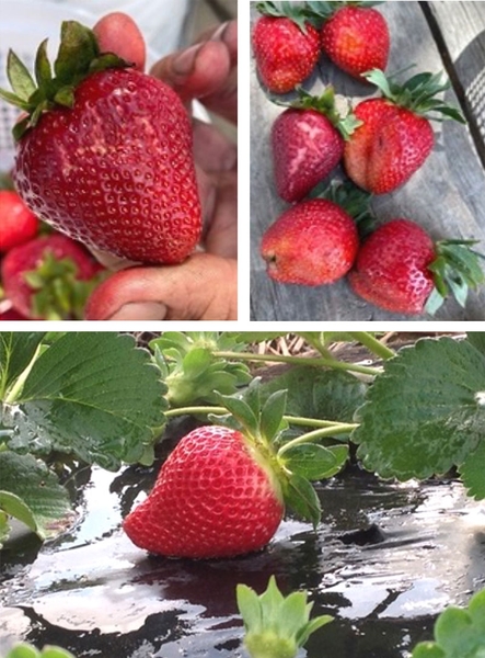 Mid-season. Large uniform berry and high yield (Figure 2-4a and Figure 2-4b). Very firm fruit with fair flavor. Best for mostly wholesale markets. Flavor noted to be good in Arkansas but variable in North Carolina. Color has also been noted to be variable in NC. Not rain tolerant. Spring fertigation most likely different to Chandler or Camarosa.